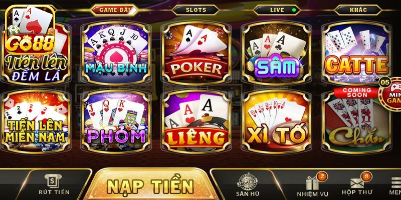 Sâm tại cổng game Go88 tuy mở rộng sang hình thức trực tuyến nhưng vẫn giữ được lối chơi truyền thống với bộ bài gồm 52 lá. Trong một ván cược sẽ có tối thiểu từ hai thành viên và tối đa là năm người tham gia, thay phiên nhau đánh bài theo chiều kim […]